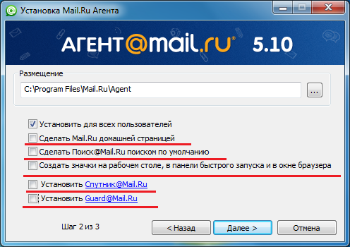 – Показывать Веб-Агент на страницах Mail.Ru.