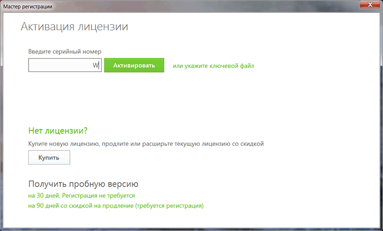 Вы уже приобрели лицензионный ключ для регистрации программы, поэтому получать его в процессе установки нам не требуется. К регистрации лицензии мы вернемся на шаге 3. Выбираем пункт Получить лицензию позднее. Затем нажмите Далее.