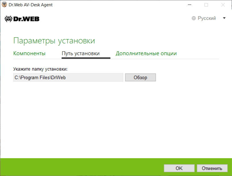 Для просмотра настроек щелкните по ссылке Параметры установки. Для завершения установки антивируса нажмите Установить.