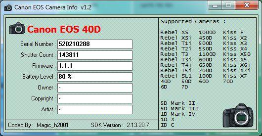 Но есть программы сторонних производителей, с помощью которых можно узнать реальный пробег. Например, программа EOS Info показывает пробег зеркалок Canon (к сожалению, не всех), но стоит уметь ориентироваться на визуальную оценку длительности использования зеркального фотоаппарата .