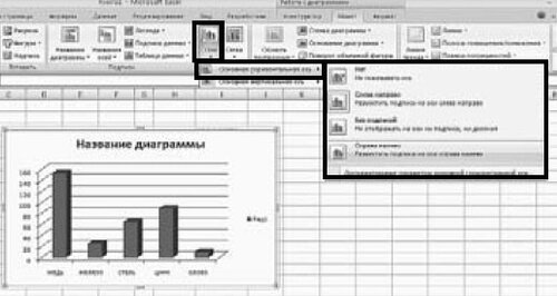Добавление или изменение положения подписи вертикальной оси