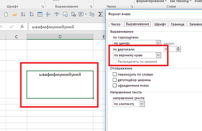 Отображение содержимого ячейки по вертикали сверху вниз |