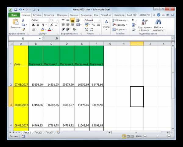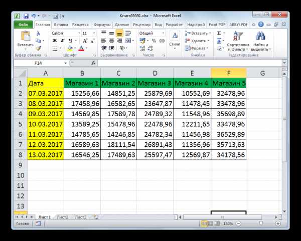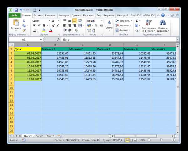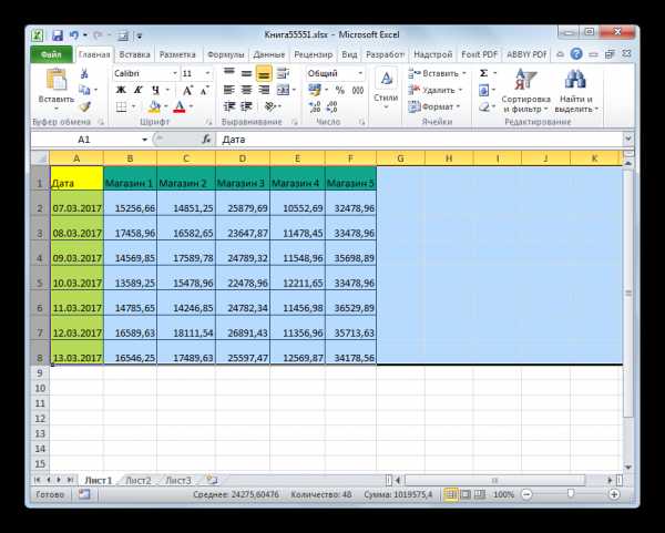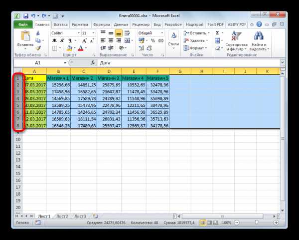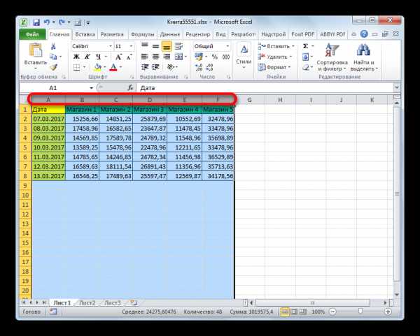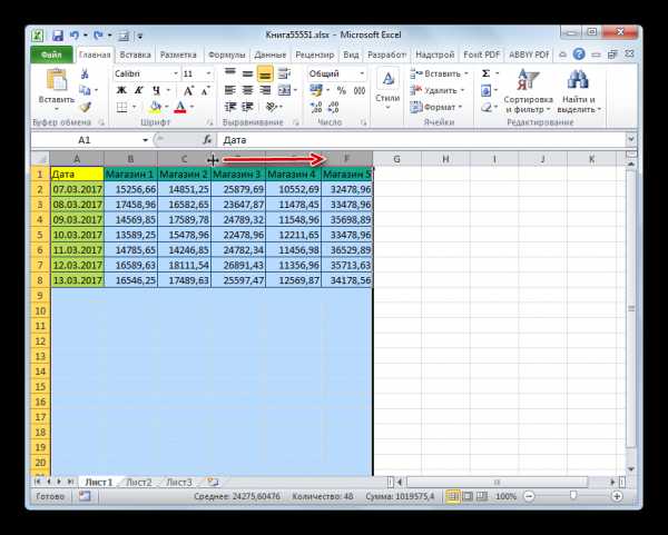 - Как можно наблюдать, после этого была увеличена ширина не только того столбца, с границей которого была проведена операция, но и всех остальных выделенных колонок.