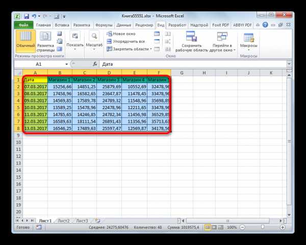 - Производим выделение табличного диапазона, который нужно увеличить.