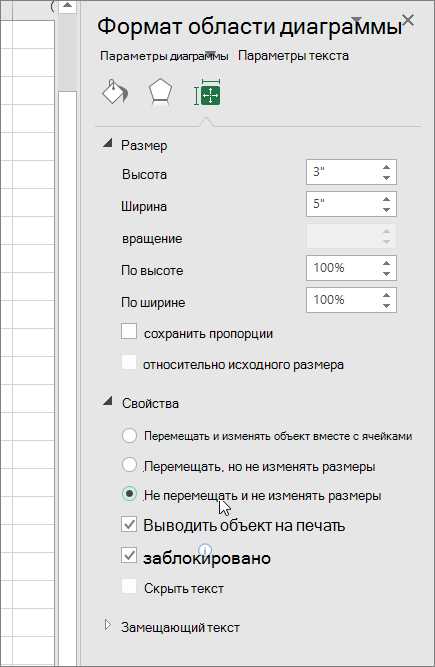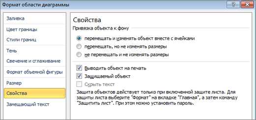 В диалоговом окне Формат области диаграммы откройте вкладку свойства .
