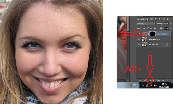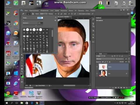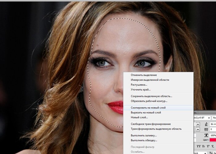 Выделите все с помощью клавиш Ctrl+A, а затем найдите в меню «Редактарование» функцию выполнения заливки и выберите черный цвет. После этого, вам нужно снова взять кисть белого цвета и провести по лицу на фото. Прозрачность слоя должна составлять шестьдесят семь процентов.