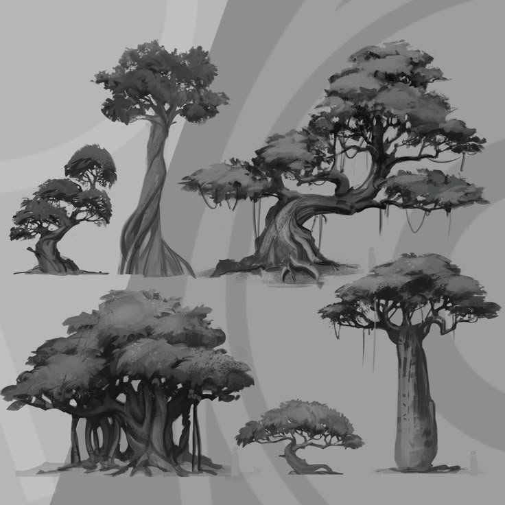 Ключевые слова: деревья, сосны, пальмы, абстрактные деревья, линии рисования деревьев