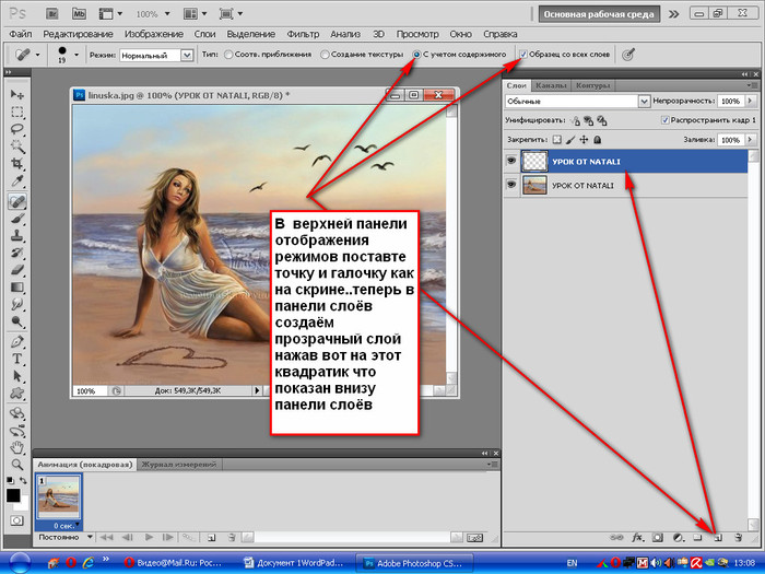 - Выберите «образец всех слоев». Только потом щелкните на область исправления.