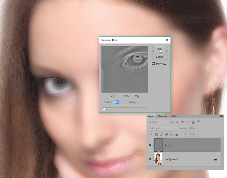 Кроме того, иконка слева от картинки слоя в виде глаза отображает видимость слоя. Чтобы при работе со вторым слоем исходный не отображался, необходимо нажать на «глаз» и отключить его.
