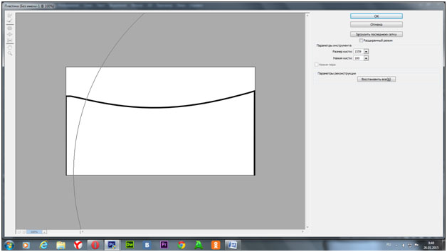 - Находим нужное место на холсте и зажимаем левую кнопку мыши — стараемся преобразовать радиус кривизны до нужного значения.