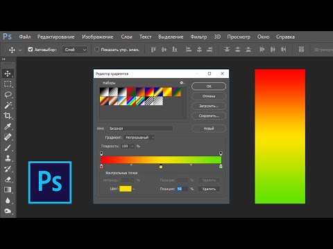 В первом варианте выберите градиент, который вы хотите использовать. Photoshop имеет несколько градиентов по умолчанию, и многое другое можно добавить в список, если щелкнуть значок шестеренки и выбрать их из раскрывающегося списка.