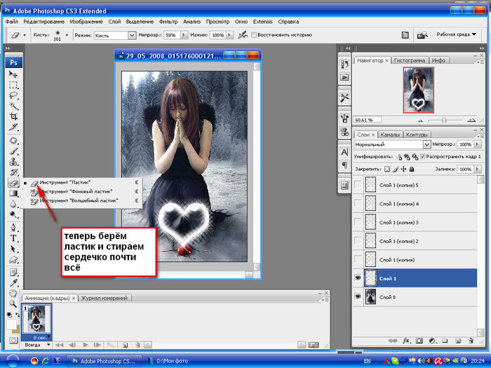 Учимся пользоваться инструментом ластик в фотошопе