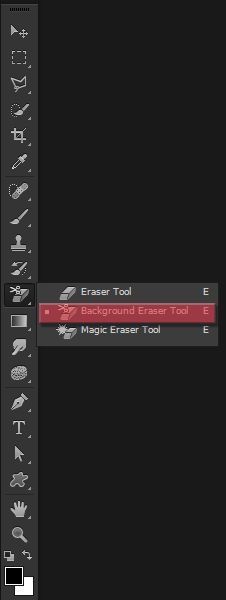 - Если щелкнуть правой кнопкой мыши инструмент «Ластик для фона» на стандартном инструменте «Ластик», откроется инструмент «Ластик для фона». Если вы используете Mac, вам нужно использовать Control-щелчок, чтобы выбрать инструмент из меню.