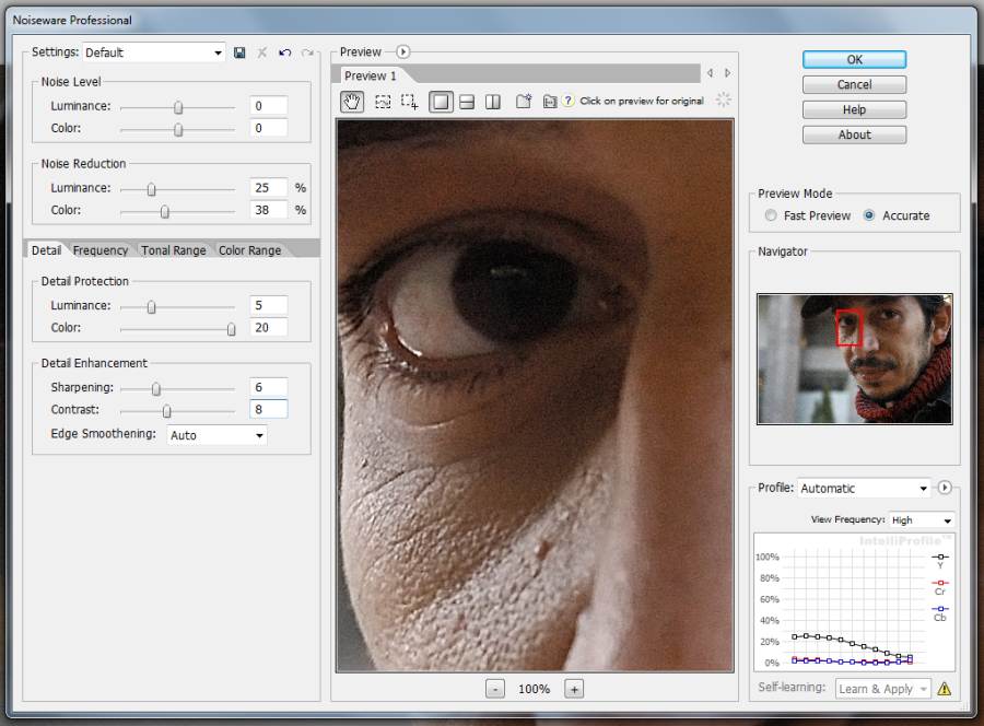 Как я уже писал выше, для каждого снимка понадобится выбирать разные значения. Сначала попробуйте указать такие же параметры, как у меня, затем двигать ползунки фильтра вправо-влево. Начните с «Радиуса», чтобы избавиться от пятен, затем «Порог», чтобы определить, сколько деталей нужно оставить на фото.