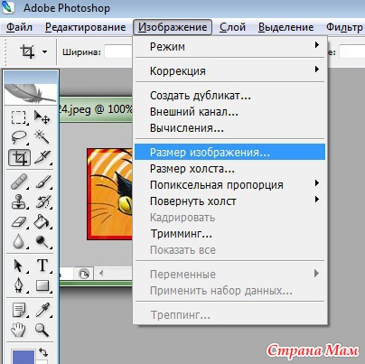 2. Нажмите «Изображение» в верхней строке меню, а затем «Размер изображения…»