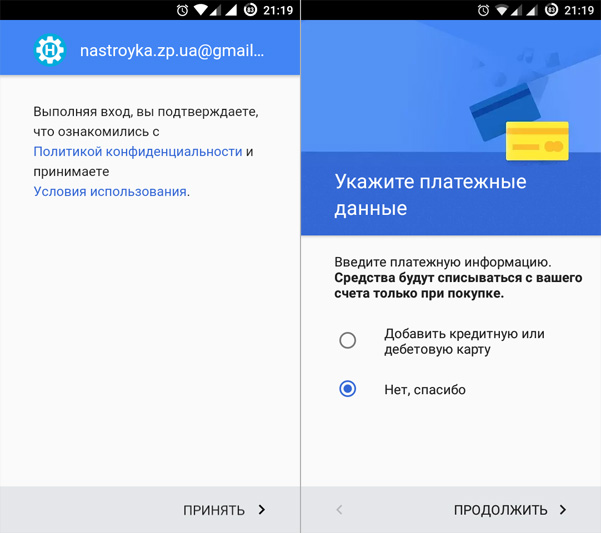 - Далее нажмите Принять и при необходимости добавьте кредитную карту, если же не желаете выберите Нет, спасибо или Не сейчас и нажмите Продолжить