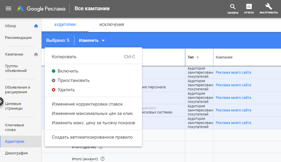 - Классический интерфейс Google Сайтов