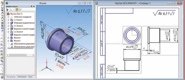 Как и в чертеже, знак неуказанной шероховатости по умолчанию располагается в в правом верхнем углу окна модели. И это неспроста. Неуказанная шероховатость передается в ассоциативный чертеж и может быть синхронизирована с моделью. Теперь инженер, создавая полный электронный макет изделия, снабжает его всей необходимой для производства технической информацией (размеры, допуски, обозначения, технические требования и т.д.). Получить полный комплект документации (чертежи, спецификации и т.д.) при этом не составит труда — вся информация из модели перейдет в чертеж.
