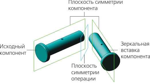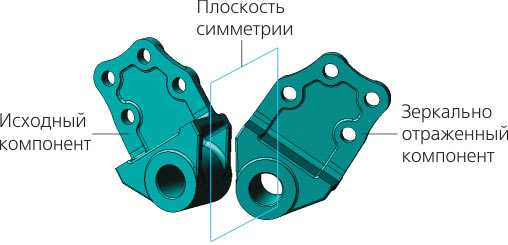 Если же исходный компонент не обладает симметрией, как правило, выполняется зеркальное отражение исходного компонента относительно указанной плоскости симметрии (рис. 6). Полученный элемент может быть новой отдельной моделью или зеркальным исполнением модели.