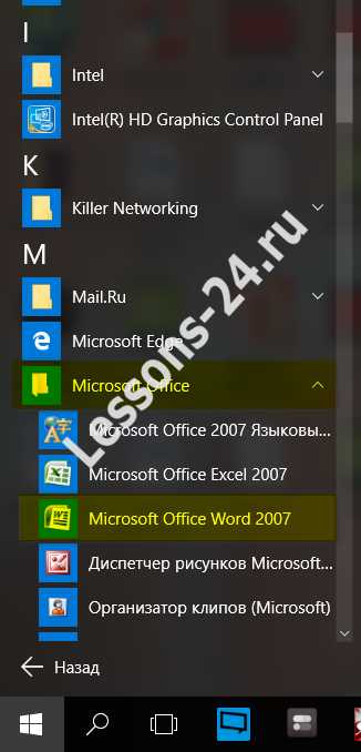 2. Способ 2 – Открываем программу через «Все программы». На рабочем столе ярлык Word-а есть не у каждого человека, поэтому если вы не отыскали его у себя – не беда. Нажимаем на кнопочку «Пуск», либо на нижней панели, либо на клавиатуре, далее выбираем пункт «Все программы». Найдите в программах производителя — Microsoft Office, кликните на него один раз левой кнопкой мышки и в появившемся контекстном меню выберите «Microsoft Office Word». Кликнуть на название программы достаточно будет один раз.