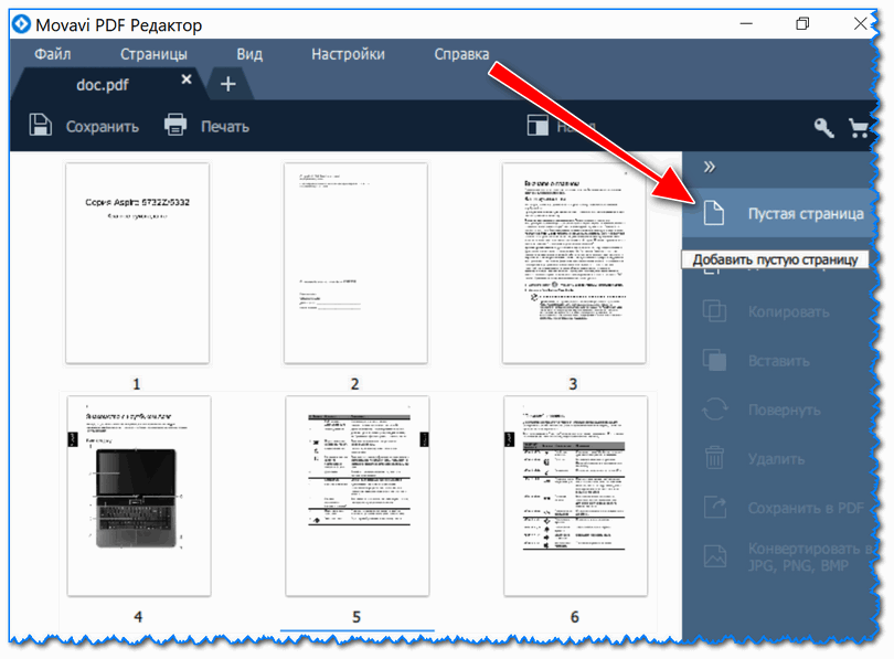 Переместить или скопировать страницу в PDF, с помощью эскизов страниц