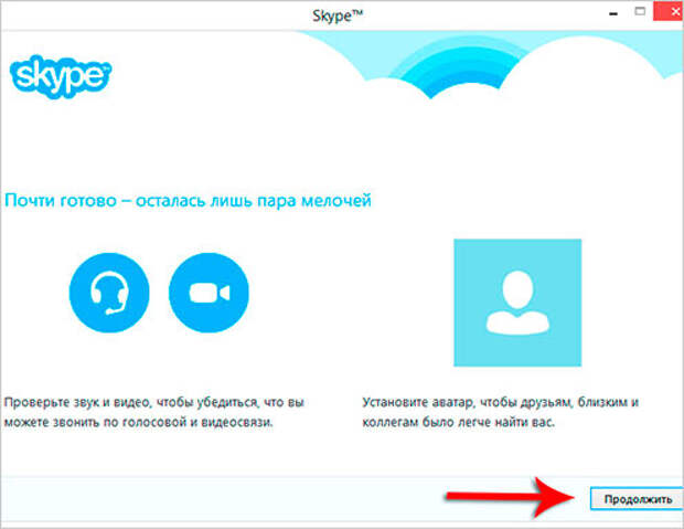 - Прочтите Условия использования Skype и Политику конфиденциальности Skype, а затем нажмите Принимаю — Продолжить .