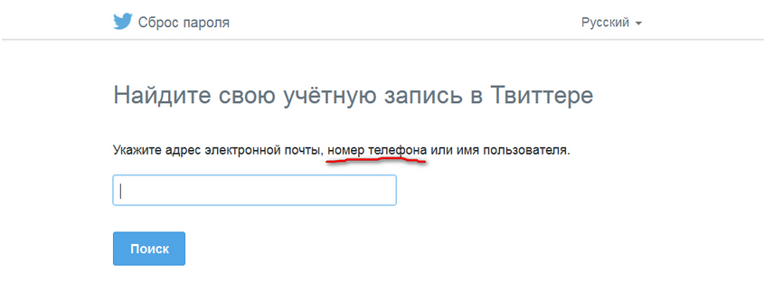 Введите свой адрес электронной почты, номер телефона или имя пользователя Twitter в текстовое поле.