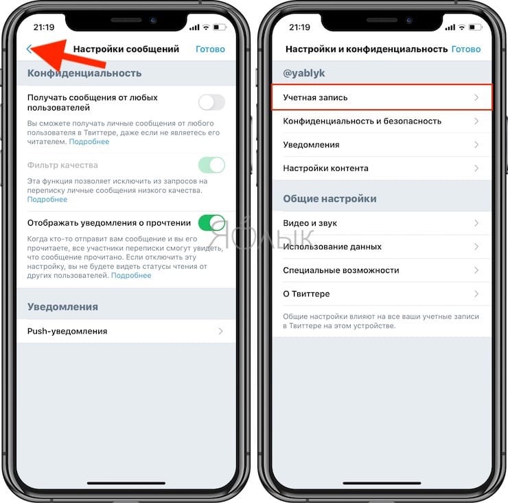 - В приложении Twitter коснитесь изображения своего профиля в верхнем левом углу, затем выберите «Настройки и конфиденциальность»