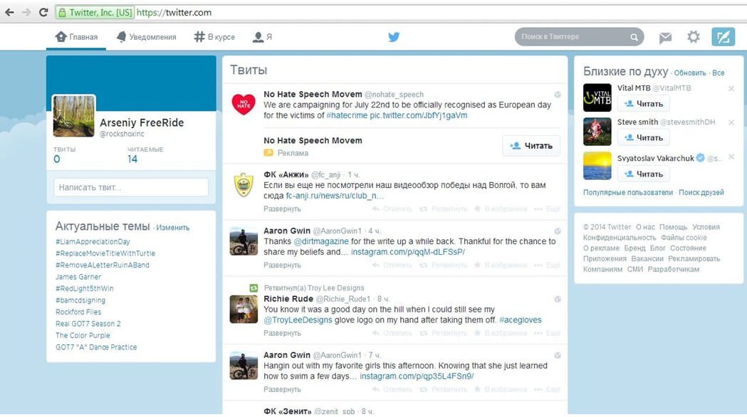 - Для начала откройте сайт Twitter. Имейте ввиду: если, открыв адрес Twitter.com, вы сразу же попадаете на страничку вашей учётной записи – значит, вы уже находитесь в системе. Поэтому, переходите сразу к 3 шагу.