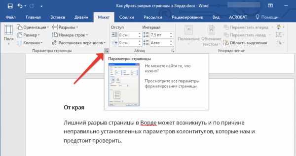 Просмотрите размер интервалов до и после абзаца. Если этот показатель необычно велик, он и является причиной возникновения нежелательного разрыва страницы.