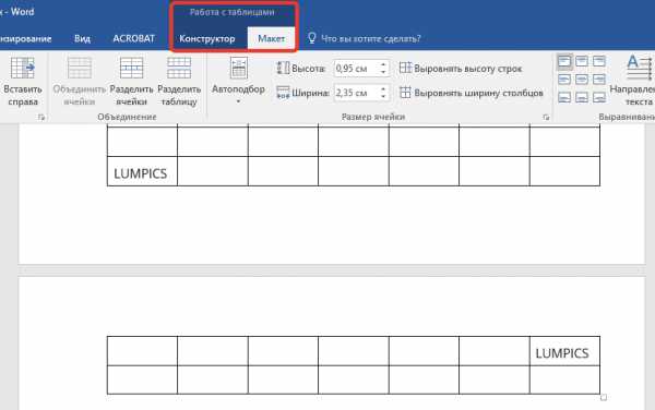 Кликните по таблице, в основной вкладке «Работа с таблицами» перейдите во вкладку «Макет».