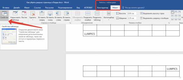 Далее выбираем меню «свойства» в группе «Таблицы».