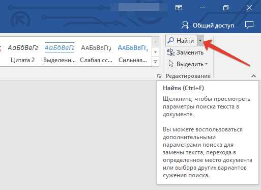 Для удаления так называемого жесткого разрыва можно использовать поиск с последующей заменой и/или удалением. Во вкладке «Главная», группа «Редактирование», нажмите на кнопку «Найти».