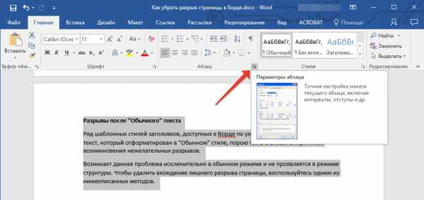 Еще одна из возможных причин возникновения нежелательного разрыва страницы — разбивка на страницы предыдущего абзаца.