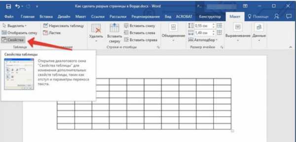 Стандартные параметры Майкрософт Ворд не предоставляют возможностей для вставки разрыва страницы непосредственно в ячейке таблицы. В случаях, когда таблица не полностью помещается на одной странице, MS Word автоматически помещает всю ячейку на следующую страницу. Это тоже приводит к разрыву страницы, а для того, чтобы его убрать, необходимо проверить некоторые параметры.