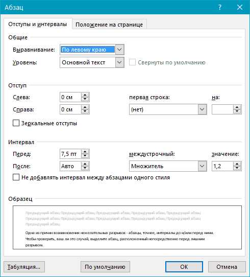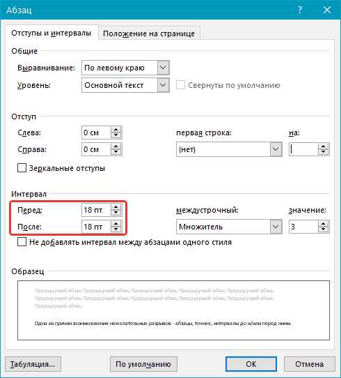 Установите желаемое значение (меньше указанного) или выберите значения по умолчанию, чтобы избавиться от разрыва страницы, вызванного большими интервалами до и/или после абзаца.