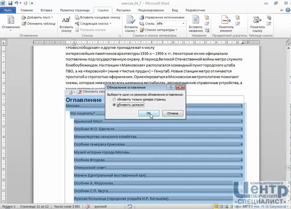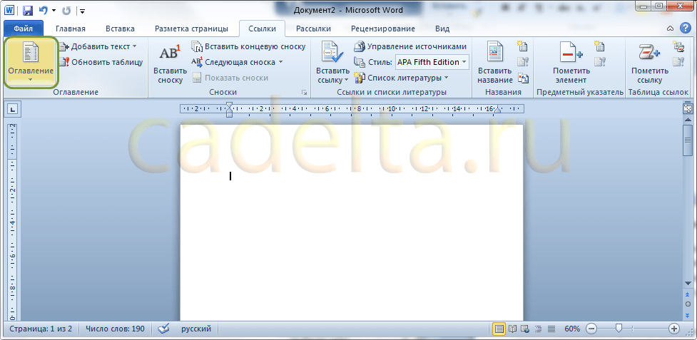 При необходимости тонких настроек оглавления нажмите «Оглавление..»