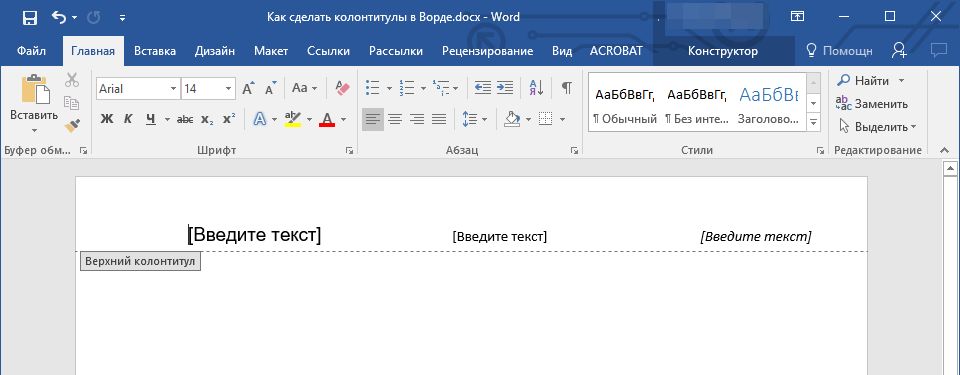 Добавление колонтитулов в Microsoft Word