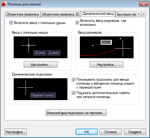Отображение подсказок в командной строке и отключение опции «Угол».
