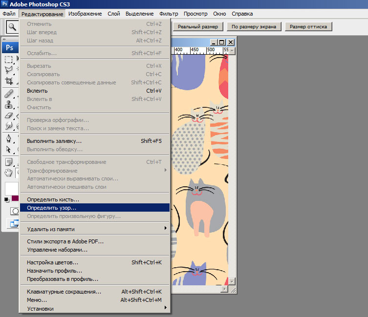 Далее, в главном меню заходим во вкладку «Редактирование» и выбираем «Выполнить заливку».