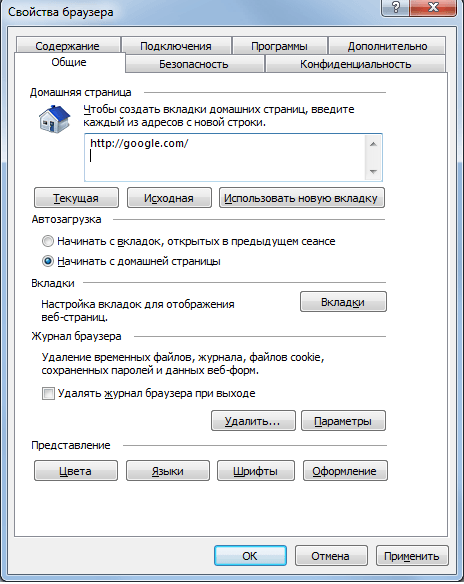 Удалить журнал браузера |