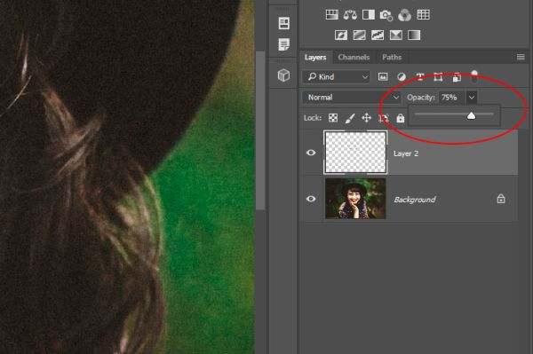 Теперь верните прозрачность на 100%. Получился новый слой с изображением без пятна.