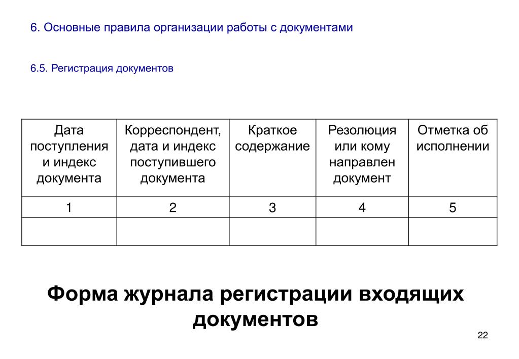 Зарегистрировать поступивший документ – значит подтвердить факт его получения организацией, для чего каждому полученному документу присваивают свой номер и вносят основные данные о нем в специальную форму (например, в журнал регистрации или регистрационные карточки).