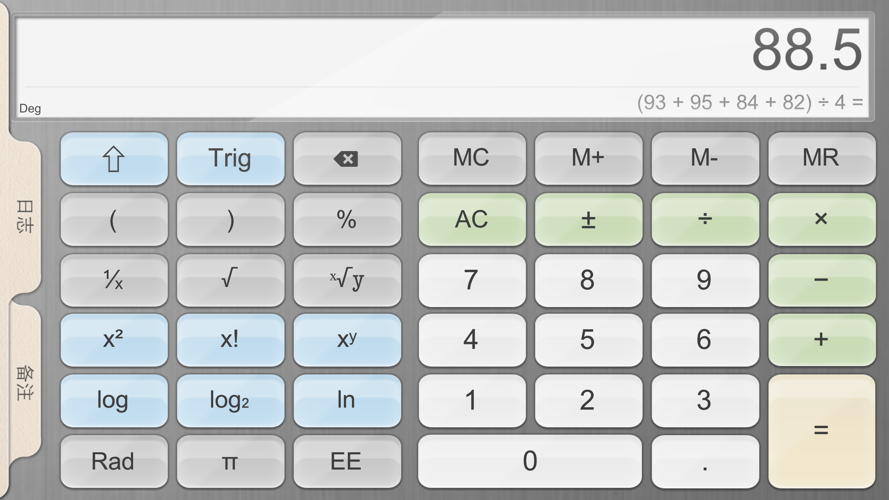 Чтобы открыть для себя совершенно новый мир математических возможностей, поверните телефон в альбомную ориентацию. Вы увидите массу новых символов. Вы можете искать квадратные корни, находить логарифмы и выполнять все виды сложных уравнений.