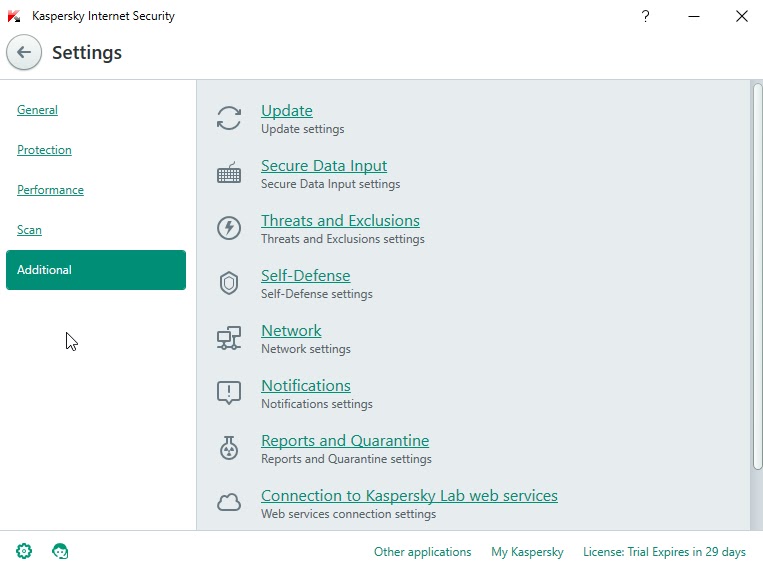 Настройки Kaspersky Free