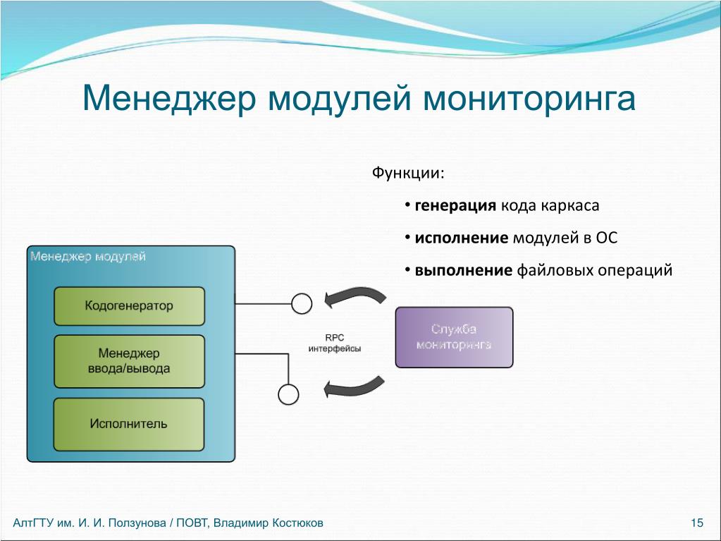 - настраивает каждый сервис для экспорта данных мониторинга и обеспечивает единую логику управления связям по всему приложению;