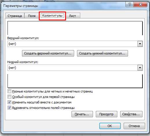 - В открывшемся окне параметров страницы переходим во вкладку «Колонтитулы».