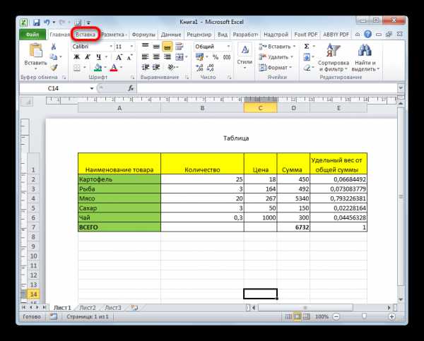 1. В верхней строке меню программы выберите вкладку «Вставка».