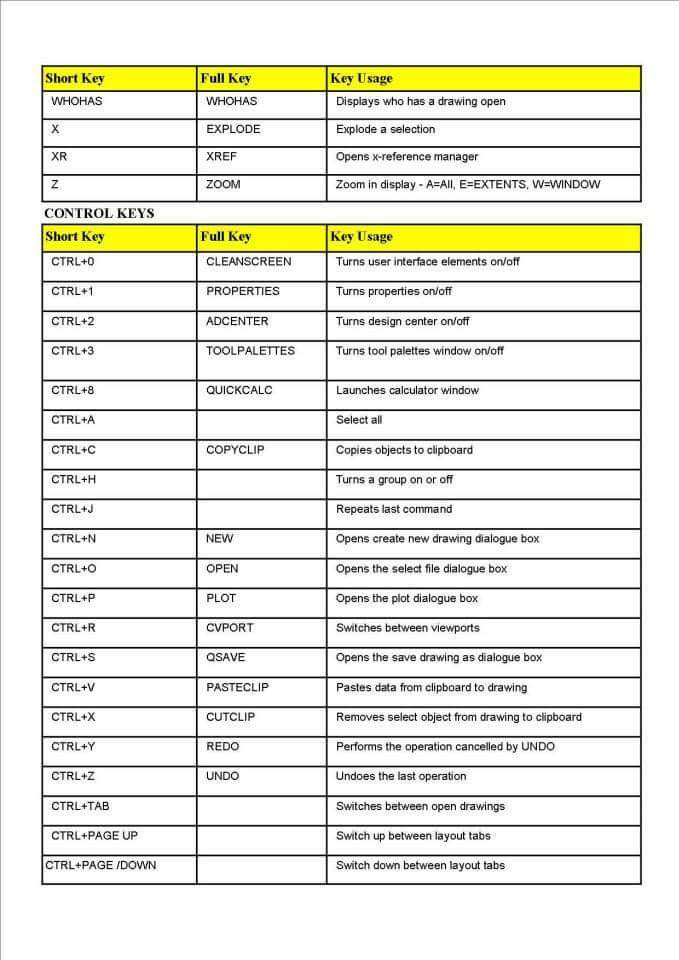 В следующем списке представлены основные сочетания клавиш, которые можно использовать в AutoCAD: