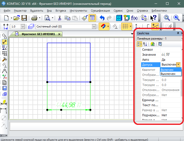 - Измерение (2D). Здесь можно измерить расстояние между двумя точками, между кривыми, узлами и другими элементами фрагмента, а также узнать координаты какой-то точки.